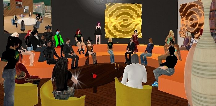 Il pubblico degli avatar entra nella sede del Circolo Letterario "Dora Grossa"
