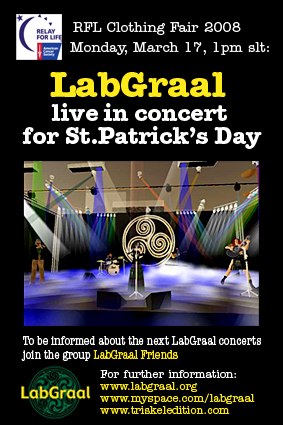Il LabGraal si è esibito il 17 Marzo 2008 in occasione di St. Patrick's Day per "Relay For Life Clothing Fair", uno dei maggiori eventi di Second Life.