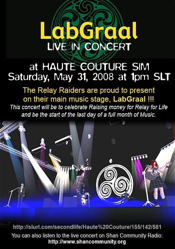 Il 31 Maggio 2008 il LabGraal si č esibito nella Land americana Haute Couture Sim nell’ambito di una iniziativa per la lotta contro il cancro.