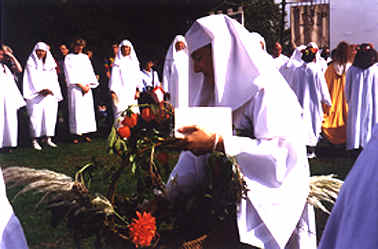 La cerimonia e' semplice e solenne come e' nello stile di questo ordine iniziatico. I druidi, i bardi e gli ovati sfilano in processione verso la cima della collina principale del parco, e qui si dispongono in cerchio muovendosi in senso orario.