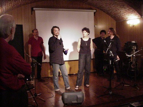 Il Laboratorio Musicale del Graal con Stefano Milla e Renucio Boscolo durante il rinfresco