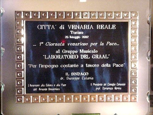 La Targa commemorativa consegnata dalla Cittą di Venaria al Laboratorio Musicale del Graal