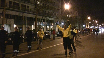 dall'inconsueta scena di un gruppo composto da migliaia (senza esagerare) di "rolleur" (pattinatori a rotelle), di tutte le età, che stavanno facendo una corsa in piena notte, scortati dalla polizia, lungo le arterie principali della città. Una scorribanda, una randonnée, famosa in tutto il mondo, un evento unico e spettacolare che i parigini chiamano all' inglese "Friday night fever". Il giro di Parigi sui pattini, 30 chilometri in meno di tre ore ogni venerdì notte a cui partecipano in media decine di migliaia di persone, è ormai una istituzione che vede in gara anche personaggi famosi.