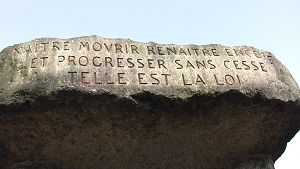 "Nascere, morire, rinascere per progredire sempre: questa è la legge". Cosí si legge sul suo epitaffio. Per Kardec Dio è l'intelligenza suprema, causa prima di tutte le cose, in netta antitesi con la materia, essendo puro spirito. Gli elementi, secondo la concezione kardechiana, che compongono l'Universo sono: il Dio creatore, lo Spirito, la Materia ed il Fluido, un elemento intermedio tra questi ultimi due, chiamato "perispirito".