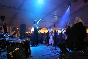 maggior difficoltà è consistita nel non incrociare lo sguardo di alcuni componenti della mia band, di cui però non riuscivo a non percepire i pensieri. Ma vista la mia/nostra determinazione, alla fine tutti ci hanno aiutato in un'impresa che all'inizio sembrava impossibile. E così abbiamo suonato con un impianto da discoteca, senza casse spia, dopo un soundcheck di circa 5 minuti (di solito dura almeno due ore), tra cubi destinati alle ballerine, con luci psichedeliche, fumo a gogò ed effetti speciali che rendevano la nostra performance tra l'onirico e il fantasy. Dopo il concerto ero stravolta, non per aver cantato ed essermi dimenata per un'ora e mezza sul palco, ma per lo stress accumulato nel cambio di programma. Ma sono certa che anche i meno convinti della mia band, a posteriori in cuor loro mi hanno dato ragione, anche se ovviamente non lo ammetteranno mai.