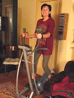 Ma i festeggiamenti erano già iniziati il giorno prima, con la sorpresa dei miei compagni del Lab che mi hanno trascinata praticamente bendata in un megastore di articoli sportivi dove l'unica opzione che avevo era quella di scegliere tra tre modelli di ellittiche. Cos'è una ellittica? E' un fantastico strumento di tortura, ci si può fare un sacco di cose: sudare, farsi venire la tachicardia, il fiatone, stremarsi fino a strisciare e anche fare degli schetch comici per gli amici (Andrea è quello che riesce meglio in questo).