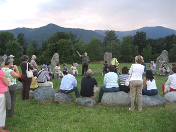 interessati ai megaliti, hanno sentito parlare del cerchio di pietre in Piemonte che ricorda quello portoghese di Almendres, e hanno organizzato un tour per visitarlo, ospitati dalla Beauty Farm Bella Rosina del nostro amico Roberto. Giancarlo ha illustrato loro l'aspetto culturale e archeoastronomico del cromlech, suscitando un interesse e un entusiasmo nei visitatori e di conseguenza anche in noi, che guardavamo con tenerezza il nostro amato cerchio, oggetto di tante attenzioni da parte di persone che avevano percorso migliaia di chilometri per vederlo.