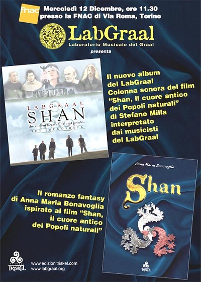 Rosalba Nattero e Giancarlo Barbadoro presentano il CD SHAN del LabGraal. Con l'occasione viene presentato anche il libro "Shan" di Anna Maria Bonavoglia. Conduce l'incontro Gino Steiner Strippoli |