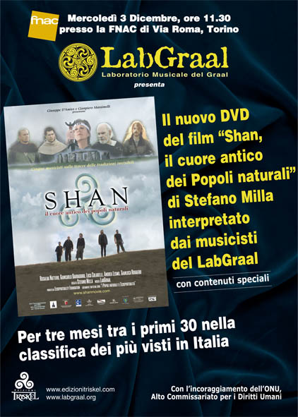 Gino Steiner Strippoli presenta il concerto del LabGraal per la presentazione del DVD SHAN. Il regista Stefano Milla parla del cuore antico dei Popoli naturali. |
